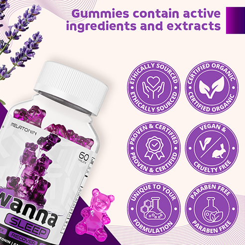 We recommend taking your gummies 30–45 minutes before you plan to sleep. This gives the Melatonin and GABA time to absorb and start the relaxation process, so you’re ready to drift off when your head hits the pillow.